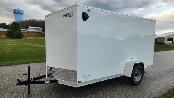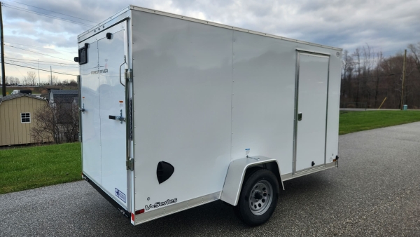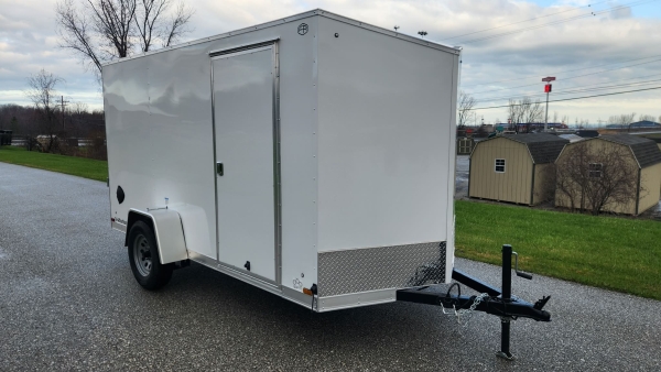 2026 Continental Cargo Eco Model 6' x 12' V-nose Cargo Trailer White w/Ramp Rear Door